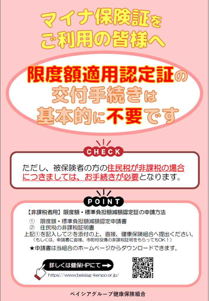 マイナ保険証をご利用の方は限度額適用認定証の申請が不要です